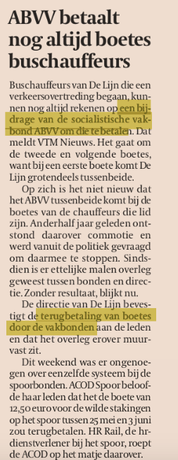 Over de vraag of het ethisch verantwoord is dat een vakbond boetes terugbetaalt die een werknemer oploopt, wil ik het hier niet te hebben. Dit is geen opinierubriek.